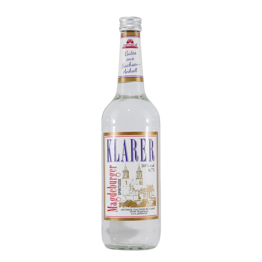 Der Abtshof Magdeburger Klarer ist ein traditioneller Kornbrand aus Sachsen-Anhalt, der bereits seit vielen Jahrzehnten nach bewährtem Rezept hergestellt wird. Die Herstellung des Klarer erfolgt in der Abtshof Destille in Magdeburg, wo er aus hochwertigem Getreide gebrannt wird. Der Klarer ist ein klassischer Kornbrand, der sich durch seinen reinen und klaren Geschmack auszeichnet. Pur genossen, ist er ein wahrer Genuss für Kenner und Liebhaber von hochwertigen Spirituosen. Aber auch zum Mixen von Cocktails eignet er sich hervorragend.