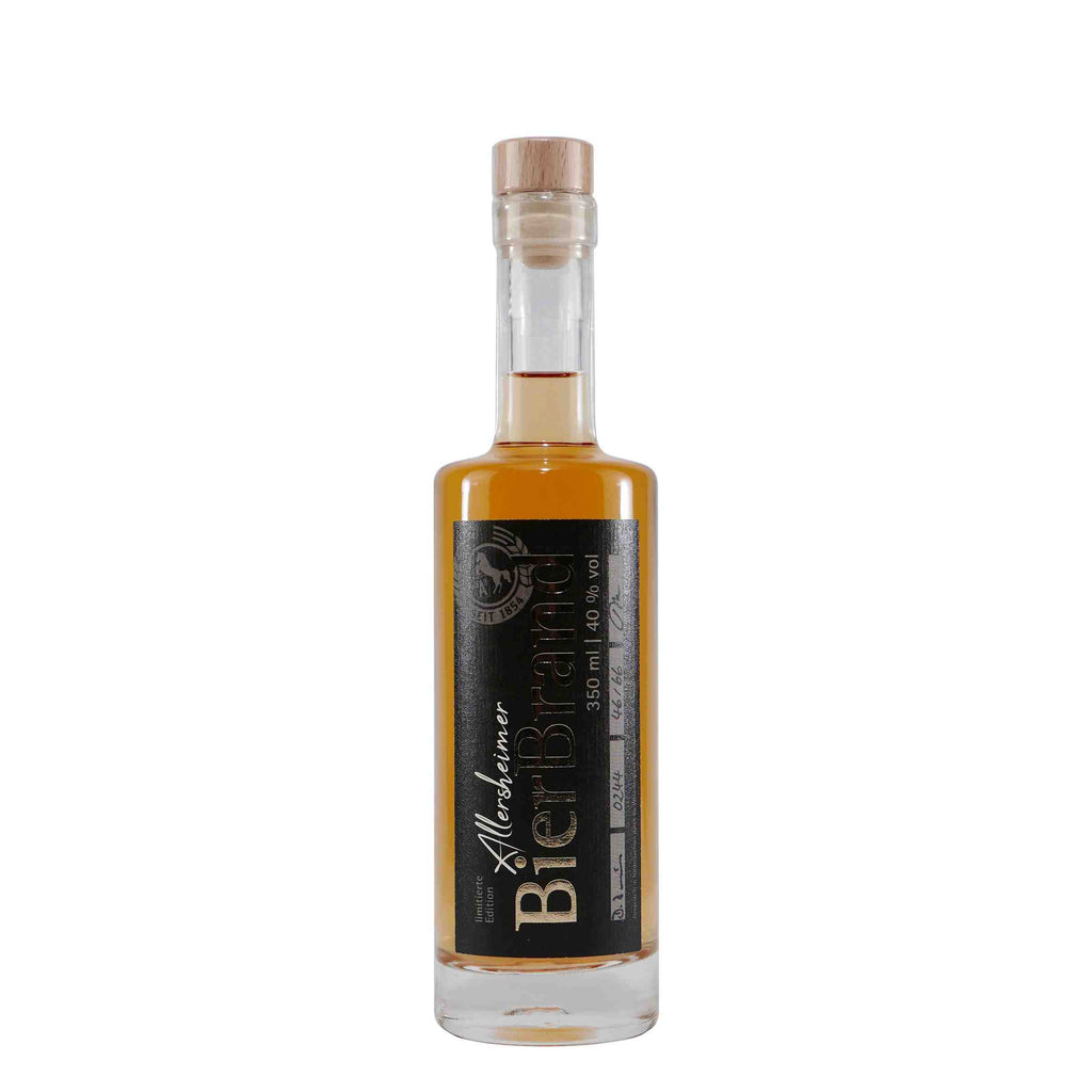 Der Allersheimer Bierbrand -Limited Edition- ist eine hochprozentige Spezialität für echte Genießer. Hergestellt aus sorgfältig destilliertem Allersheimer Bier, überzeugt dieser edle Brand durch seinen klaren Charakter, feine Malznoten und einen harmonisch milden Abgang. In kleinen Chargen produziert und in limitierter Stückzahl erhältlich, ist dieser Bierbrand ein echtes Sammlerstück – perfekt als exklusives Geschenk oder für besondere Momente. Ob pur bei Zimmertemperatur genossen oder als edler Abschluss eines Menüs: Der Allersheimer Bierbrand steht für regionale Handwerkskunst auf höchstem Niveau.