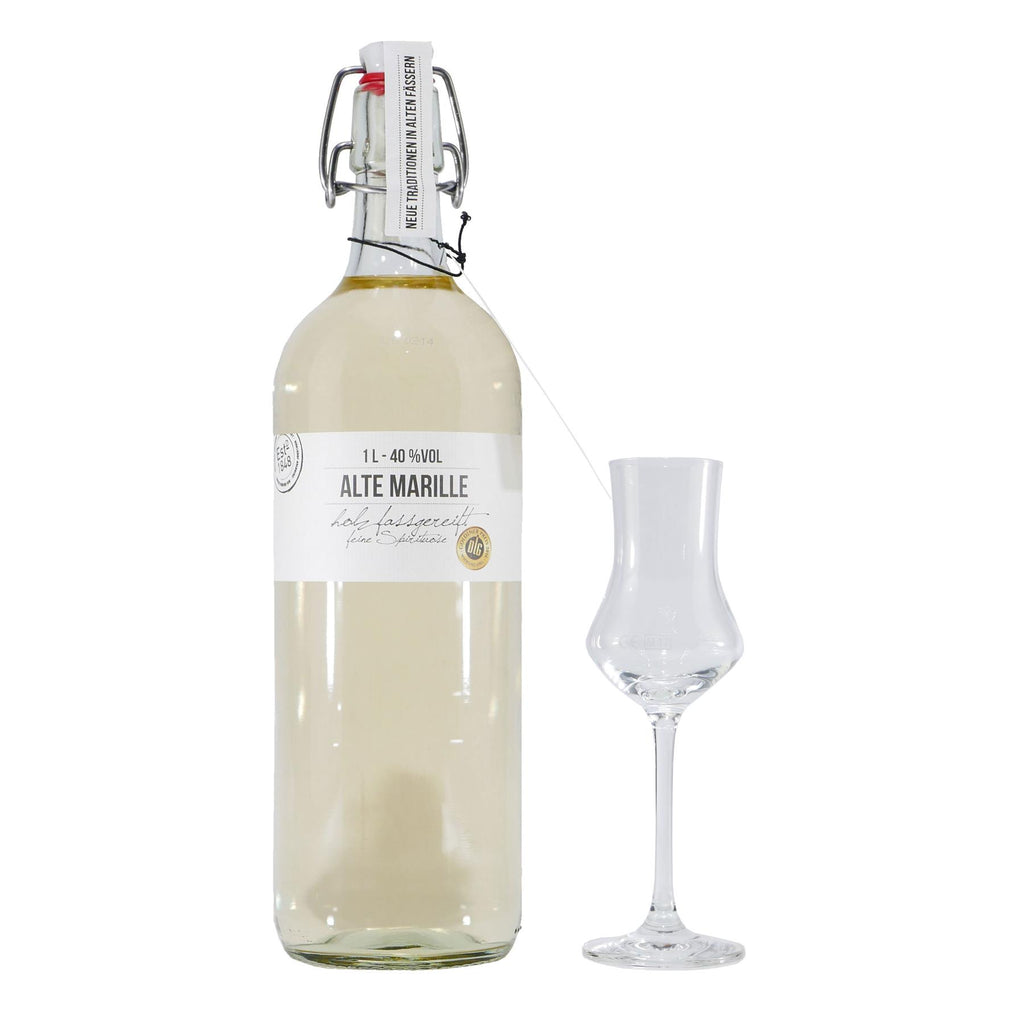 Feiner Marillenbrand mit Fruchtsüße und gut ausbalancierten Bittermandelkomponenten im Cognacfass gereift.