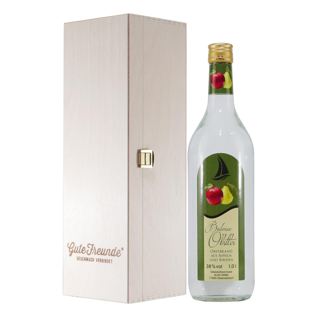 Ausgewählte Spirituosen in der GUTE-FREUNDE Holzkiste schenken - denn Geschmack verbindet.