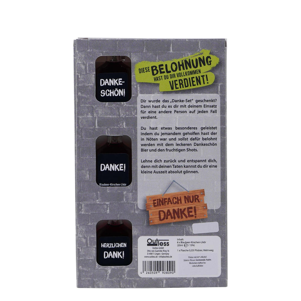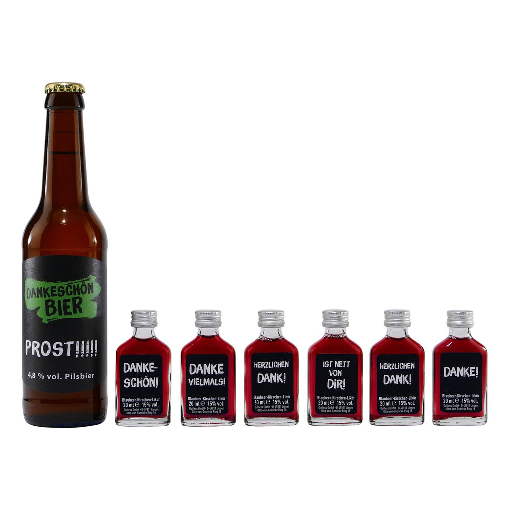 Zeigen Sie Ihre Wertschätzung auf originelle Weise mit der Geschenkverpackung „Danke für deine Hilfe“. Dieses besondere Set kombiniert eine Flasche erfrischendes Pilsbier mit sechs Mini-Fläschchen fruchtigem Blaubeer-Kirschen-Likör. Der erlesene Likör begeistert mit einer harmonischen Mischung aus süßer Blaubeere und saftiger Kirsche, während das Pilsbier für einen klassischen, herben Genussmoment sorgt. Verpackt in einer stilvollen Geschenkbox mit liebevollem Design ist dieses Set die ideale Geste, um „Danke“ zu sagen – perfekt für Kollegen, Freunde oder Familie.