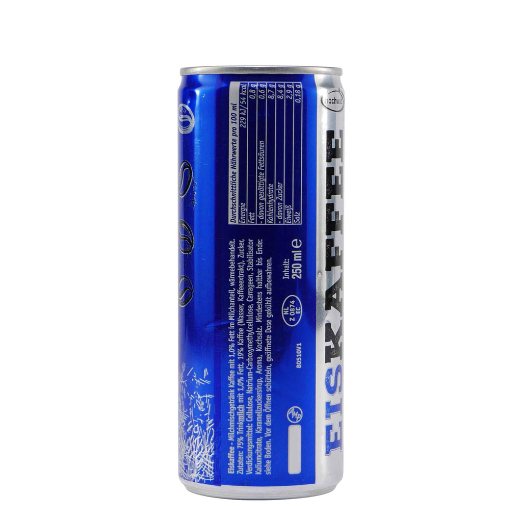 Zutaten | 75% Trinkmilch mit 1,0% Fett, 19% Kaffee (Wasser, Kaffeeextrakt), Zucker, Verdickungsmittel: Cellulose, Natrium-Carboxymethylcellulose, Carrageen, Stabilisator Kaliumcitrate, Karamellzuckersirup, Aroma, Kochsalz |