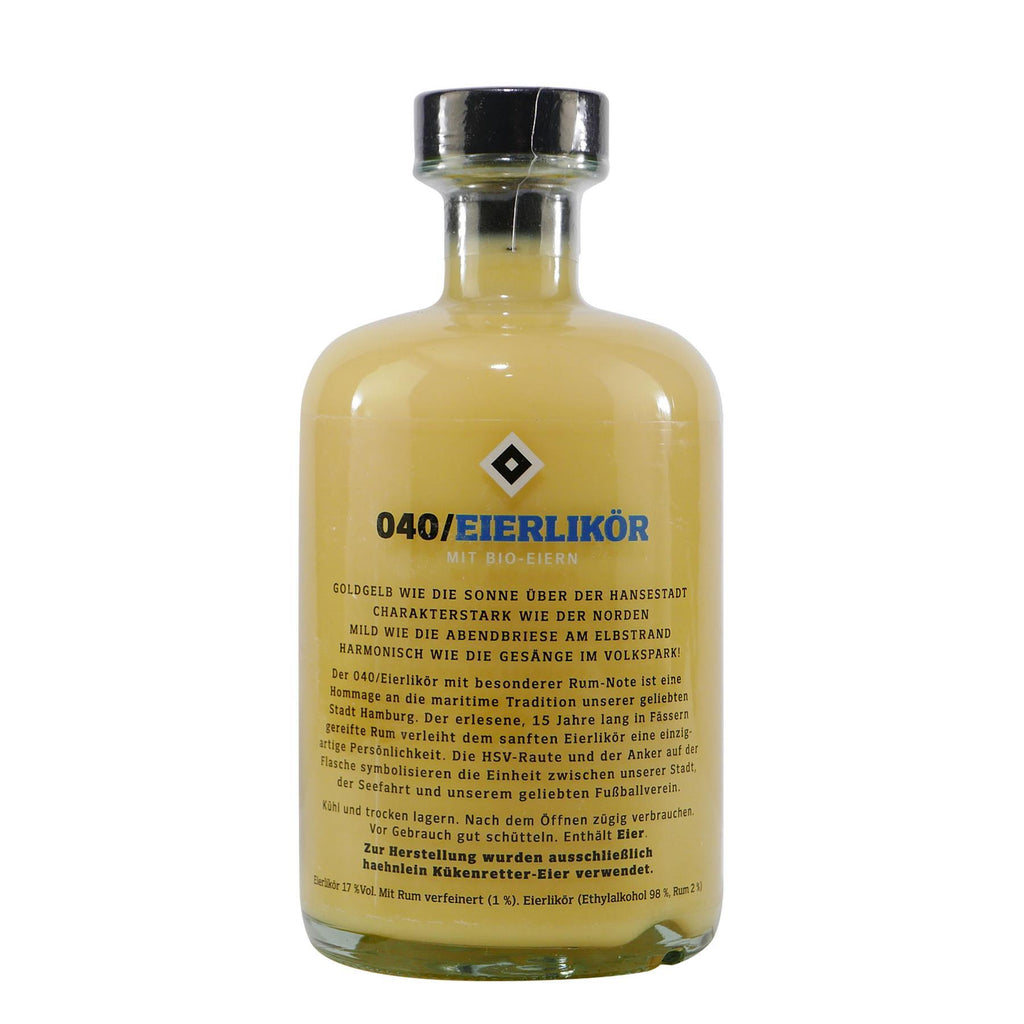Der HSV 040 Eier-Likör ist ein offizielles Lizenzprodukt des HSV und bietet eine einzigartige Kombination aus cremiger Eierlikörtextur und einer besonderen Rum-Note. Mit seinem harmonischen Geschmack aus Ei, Zucker und einer raffinierten Rum-Note ist dieser Likör ein besonderer Genuss für Fans des HSV und Liebhaber hochwertiger Liköre. Der Eier-Likör überzeugt nicht nur durch seine Qualität, sondern auch durch seine Verbindung zu einem der bekanntesten Fußballvereine Deutschlands. Perfekt als Geschenk oder für den persönlichen Genuss, ideal pur oder in Cocktails.