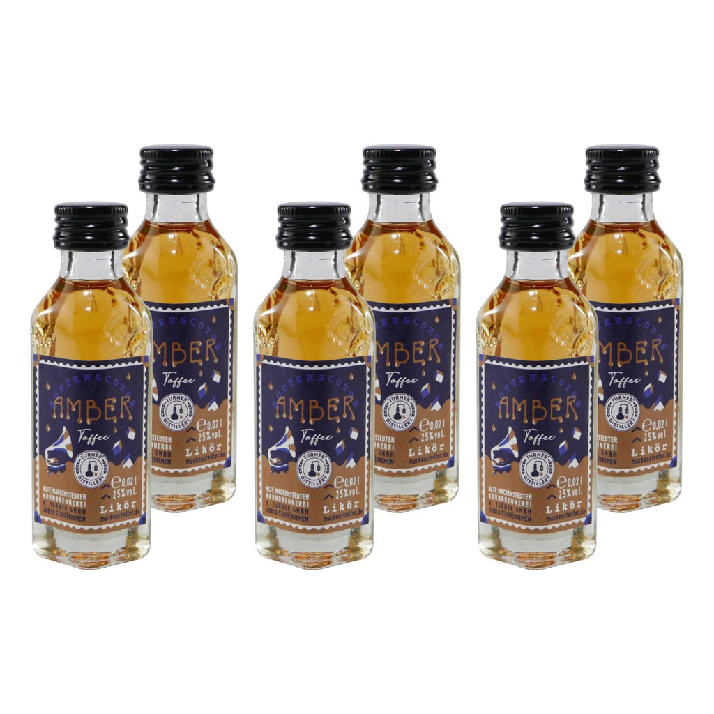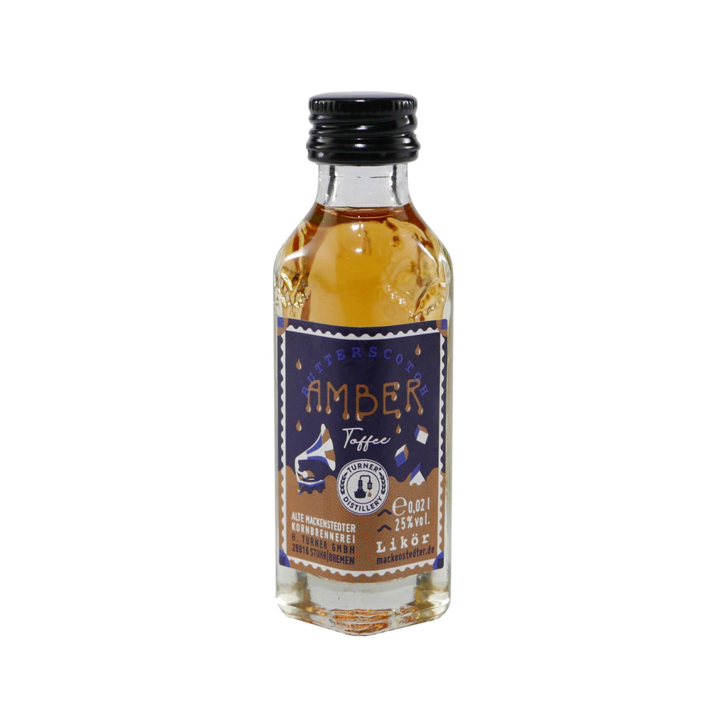 Mackenstedter Amber Toffee Likör – ein feiner Butterscotch-Likör, der mit cremigem Toffee-Geschmack und zarter Vanillenote verführt. In der praktischen 25er-Packung à 0,02´L eignet sich dieser Likör ideal für Feiern, Partys oder als charmantes Mitbringsel. Hergestellt aus hochwertigen Zutaten und mit der bewährten Mackenstedter-Qualität überzeugt Amber Toffee durch sein rundes, karamelliges Aroma – pur, auf Eis oder zum Verfeinern von Desserts.