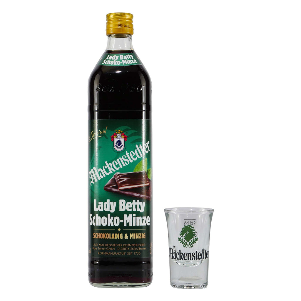 Ob als Digestif, zum Dessert oder einfach pur auf Eis – Lady Betty begeistert mit seiner geschmeidigen Textur und aromatischen Tiefe. Das Set enthält zusätzlich 6 elegante Mackenstedter Shotgläser 0,02L, ideal zum stilvollen Anstoßen mit Freunden oder als originelles Geschenk.