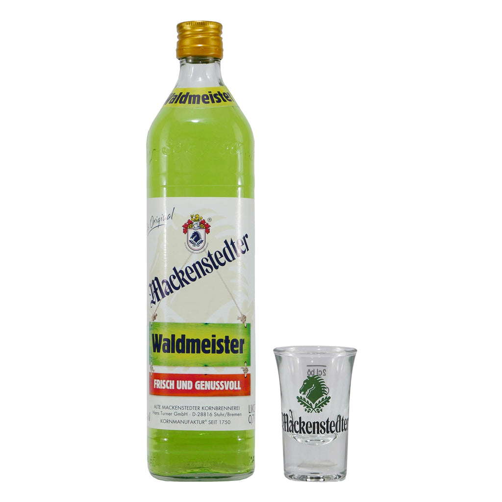 Der Mackenstedter Waldmeister Likör überzeugt mit seiner einzigartigen Kombination aus süßlich-würziger Kräuterfrische und unverkennbarem Waldmeisteraroma. Der leuchtend grüne Likör ist nicht nur optisch ein Hingucker, sondern auch geschmacklich ein Highlight. Ob als klassischer Shot, auf Eis oder im Longdrink – dieser Likör ist ein echter Partyliebling. Das Set enthält 6 stylische Mackenstedter Shotgläser 0,02L und ist somit direkt servierbereit.