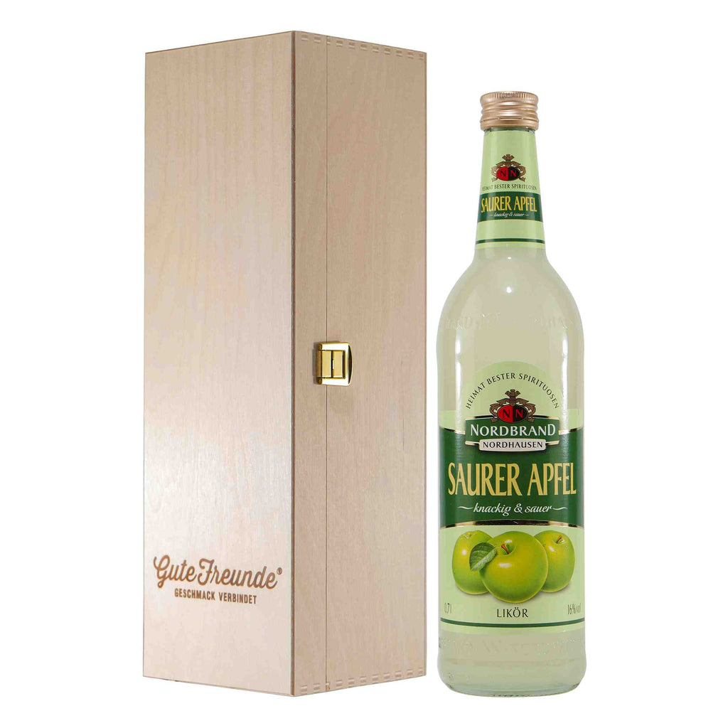 Der Nordbrand Saurer Apfel Likör überzeugt mit seinem erfrischend fruchtigen Geschmack und der perfekt ausbalancierten süß-sauren Note. Hergestellt aus hochwertigen Äpfeln und veredelt zu einem samtigen Likör, eignet er sich ideal als purer Genuss auf Eis oder als besondere Zutat in kreativen Cocktails. Dieser Likör begeistert Apfelliebhaber und alle, die den fruchtigen, leicht säuerlichen Geschmack schätzen.