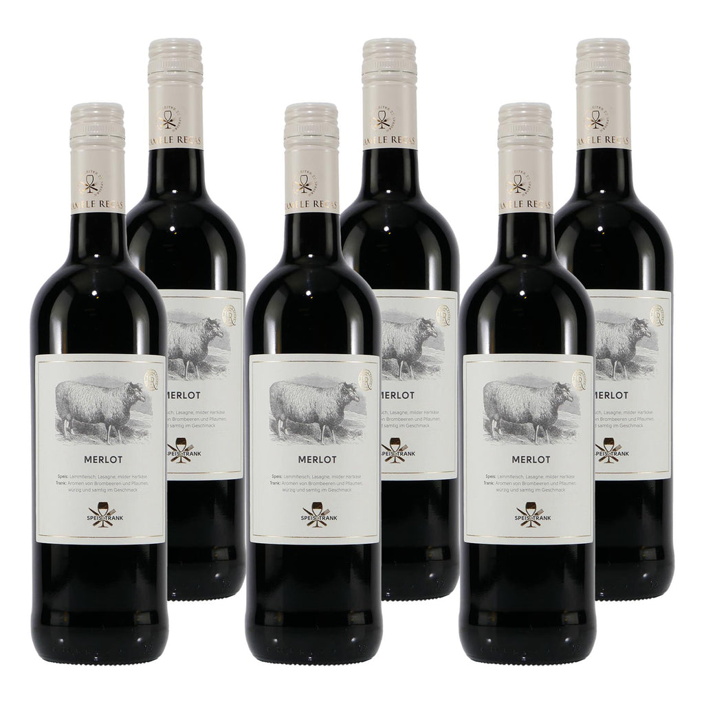 Speis & Trank Merlot ist ein exquisiter Rotwein, der mit seinem vollen Geschmack und seiner harmonischen Struktur begeistert. Hergestellt aus sorgfältig ausgewählten Merlot-Trauben, präsentiert sich dieser Wein mit einer tiefroten Farbe und einem verlockenden Bouquet von dunklen Früchten, Gewürzen und einer subtilen Eichenholznote. Im Geschmack überzeugt der Merlot mit einer angenehmen Fülle und einer ausgewogenen Balance zwischen Fruchtigkeit, Tanninen und Säure. Noten von reifen Kirschen, schwarzen Johannisbeeren und einem Hauch von Schokolade entfalten sich am Gaumen und hinterlassen einen langanhaltenden Eindruck. Dieser elegante Rotwein eignet sich hervorragend als Begleiter zu verschiedenen Speisen. Ob zu herzhaften Fleischgerichten, Pasta, Käse oder gegrilltem Gemüse - der Speis & Trank Merlot sorgt für eine geschmackvolle Ergänzung und rundet das kulinarische Erlebnis perfekt ab.