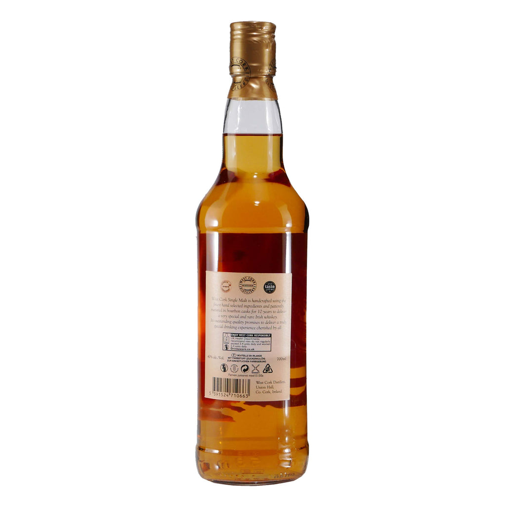 West Cork Distillers ist eine Destillerie im Westen Irlands in der Nähe von Cork. Lange Zeit wurden nur Malt Whiskeys und Flavoured Whiskeys hergestellt. Nun bringt West Cork den ersten Single Malt auf den Markt: einen 10 Jahre alten Single Malt in Bourbon Fässern gereift. Er enthält den typisch milden Geschmack des irischen Whiskeys.